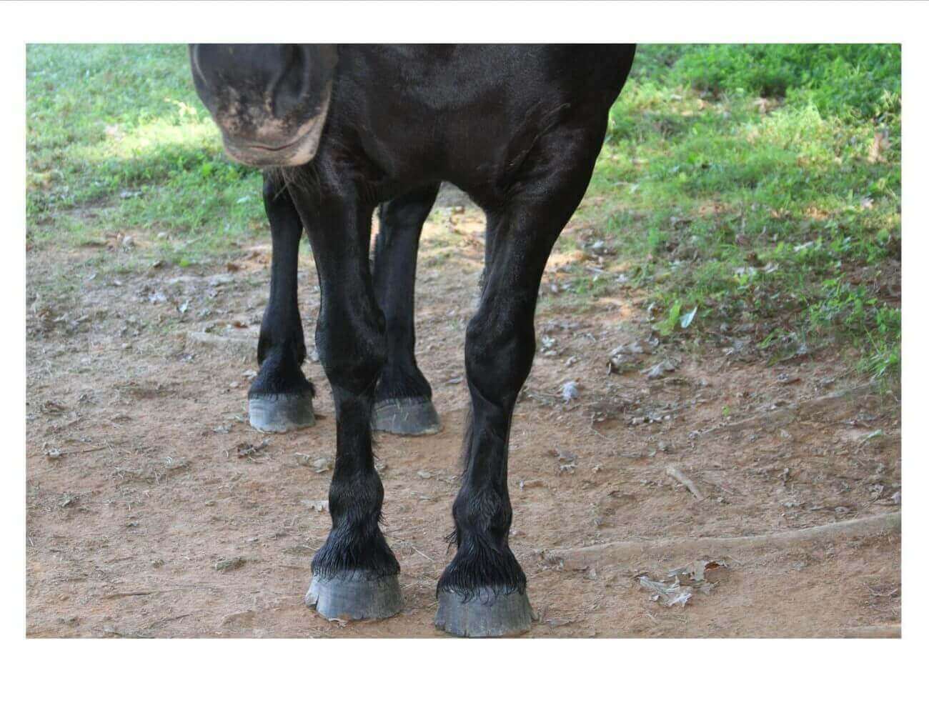 Now let’s evaluate an 8 y.o. Hanoverian gelding that is currently being used as a hunter.  Below we have both the front limb and rear limb photos.